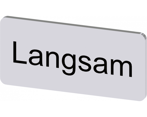 Табличка предназначена для наклеивания или защелкивания на держателе. Ее размеры составляют 12.5 x 27mm. Цвет таблички – серебристый, а надпись на ней – черного цвета. Маркировка включает слово "langsam".