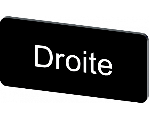Табличка предназначена для наклеивания или защелкивания на держателе. Размеры составляют 12.5 x 27 мм. Цвет таблички черный, надпись белая. Содержит маркировку 'droite'.