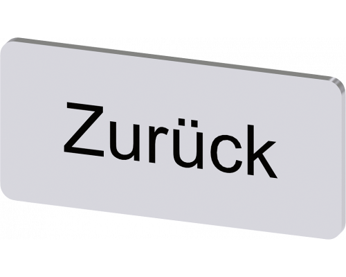 Табличка предназначена для наклеивания или защелкивания на держателе. Ее размеры составляют 12.5 x 27mm. Цвет таблички – серебристый, надпись выполнена черным цветом. Маркировка включает надпись: zurueck.