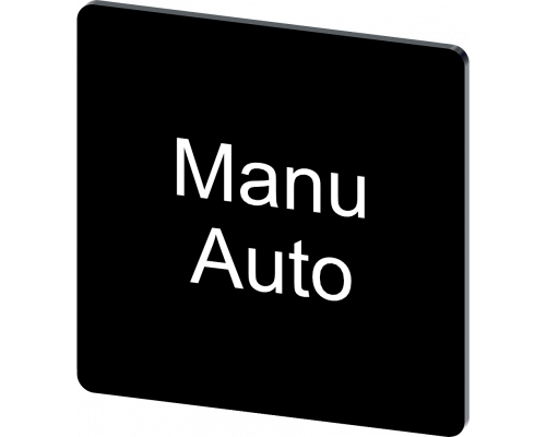 Табличка предназначена для наклеивания или защелкивания на держателе. Размер таблички составляет 27 x 27 мм. Цвет таблички черный, надпись белая. Маркировка включает в себя слова 'manu' и 'auto'.