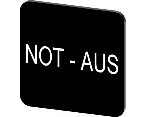 Табличка самоклеящаяся предназначена для использования на корпусах. Размер таблички составляет 22 x 22 мм. Цвет таблички черный, надпись белая. На табличке нанесена маркировка: not-aus.
