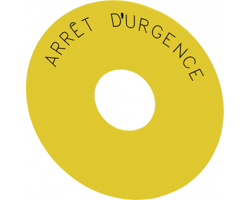 Подложка имеет желтый цвет и самоклеящуюся основу. Наружный диаметр составляет 75 мм, а диаметр отверстия – 23 мм. Подложка снабжена маркировкой: arret d'urgence.