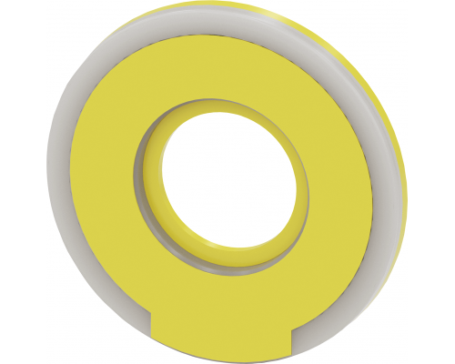 Шайба круглая предназначена для грибовидной кнопки аварийного останова. Имеет желтый цвет и оснащена подсветкой. Толщина шайбы составляет 5 мм. Наружный диаметр – 60 мм, внутренний – 23 мм. Шайба поставляется без надписи.