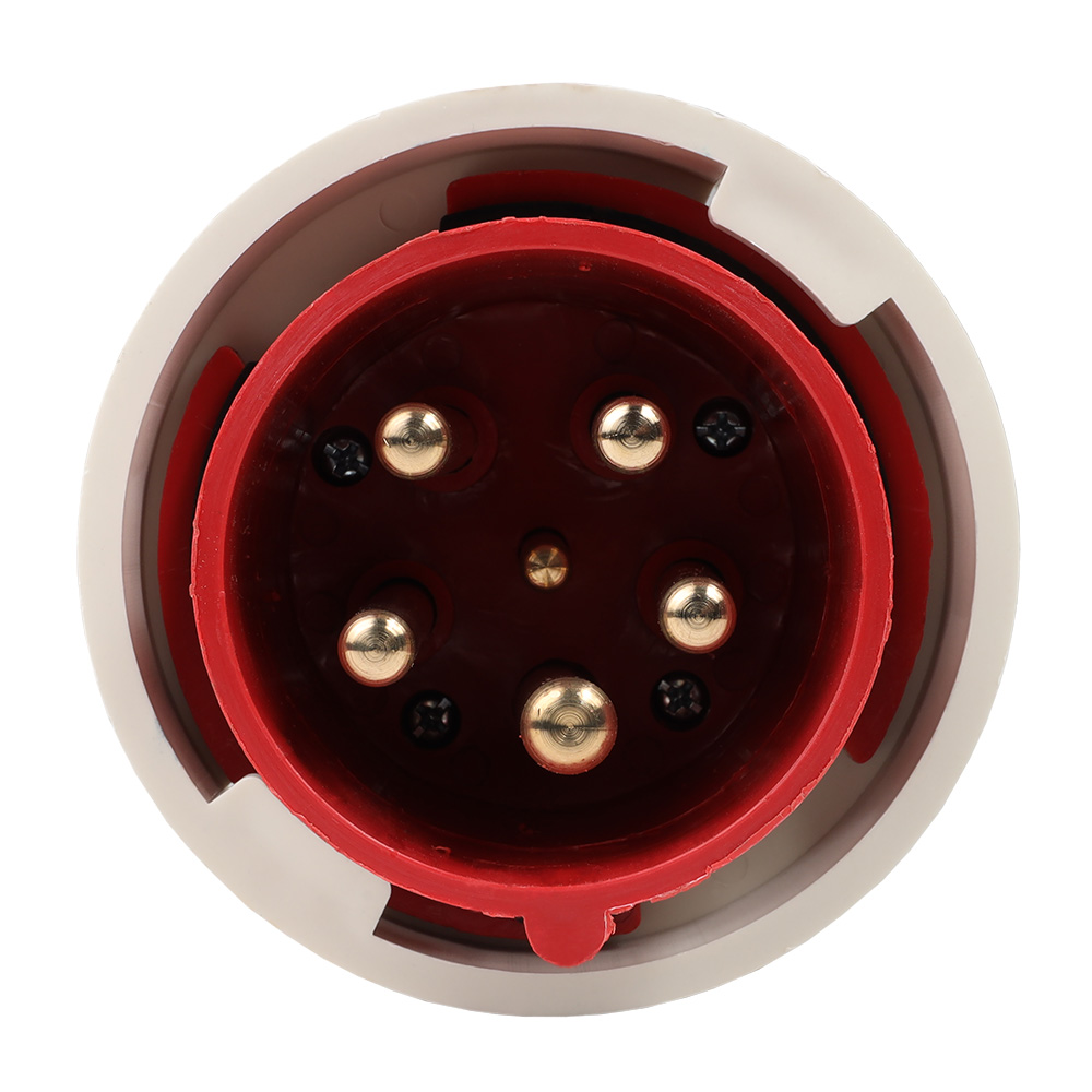 Силовая вилка 5 полюсная на номинальный ток 63 А и рабочее напряжение переменного тока 380 В.