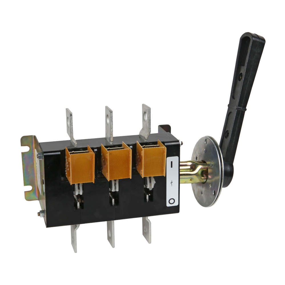 Фото. Выключатель-разъединитель 3 полюсный на номинальный ток 250 А, в котором установлена съемная рукоятка.