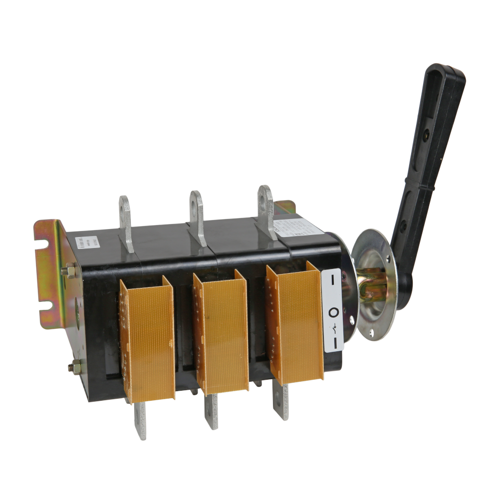 Фото. Выключатель-разъединитель 3 полюсный на номинальный ток 250 А, в котором установлена съемная рукоятка.