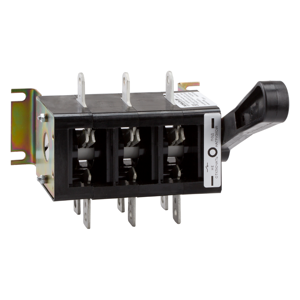 Фото. Выключатель-разъединитель 3 полюсный на номинальный ток 400 А, в котором установлена несъемная рукоятка.