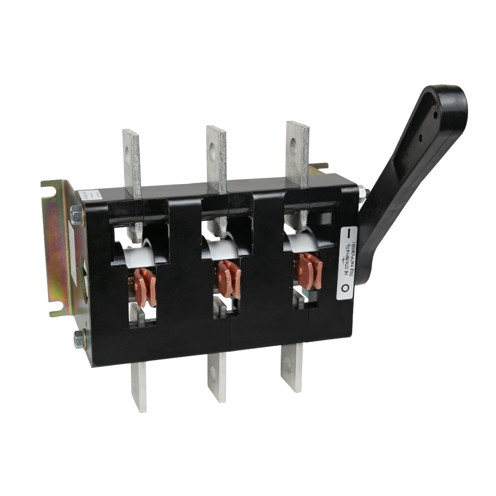 Фото. Выключатель-разъединитель 3 полюсный на номинальный ток 630 А, в котором установлена съемная рукоятка.