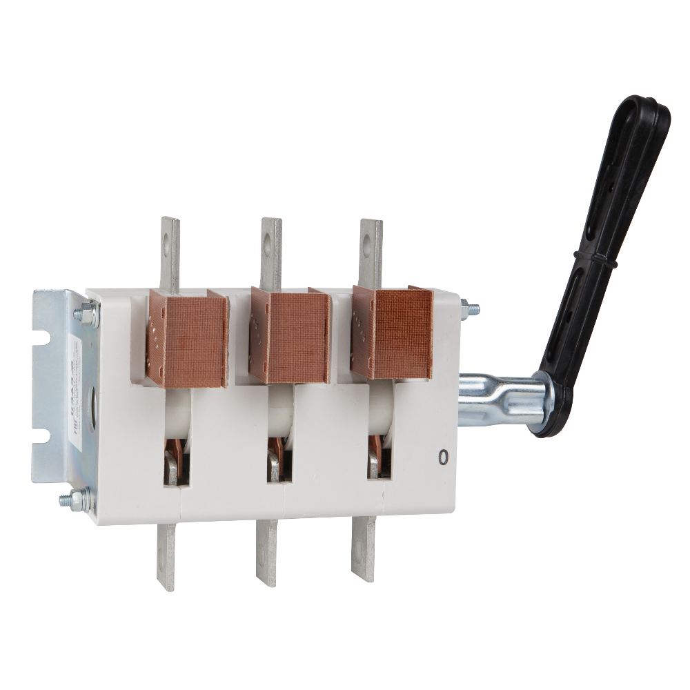 Фото. Выключатель-разъединитель 3 полюсный на номинальный ток 400 А, в котором установлена съемная рукоятка.