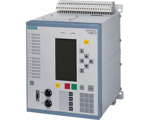 Панель управления оснащена подсвеченным большим дисплеем, кнопками управления, переключателями с ключом и функциональными клавишами. Предусмотрена числовая панель управления и интерфейс ПК. Обеспечивается отключение 3-фазное и пуск I>. Реализована защита по напряжению с измерением минимальных, максимальных и средних значений.