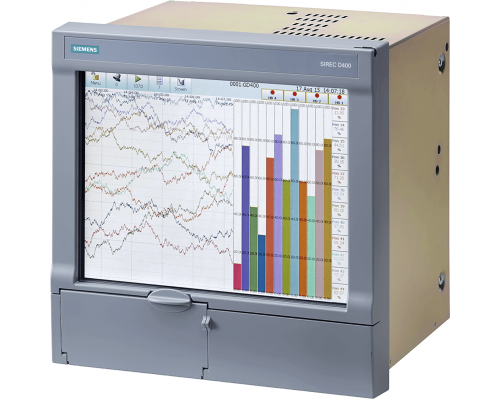 Цифровой дисплейный самописец sirec d400 предназначен для всех стандартных приложений. Обеспечивается минимальная частота опроса в 200 мс для сигналов ma, v, mv. Задняя сторона корпуса оснащена интерфейсами ethernet, rs485 и usb. На лицевой панели расположены разъем для карты памяти cf и usb-интерфейс.